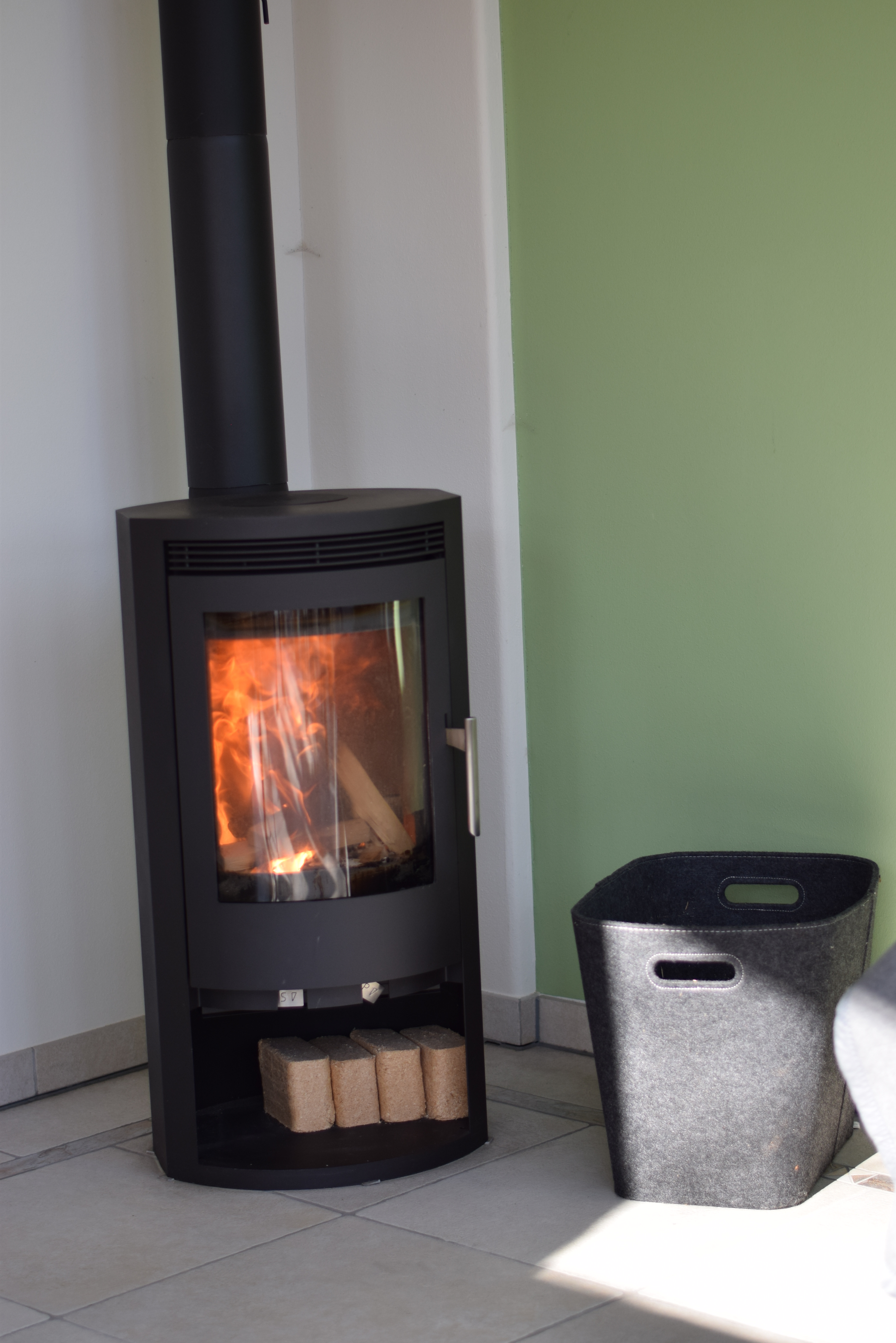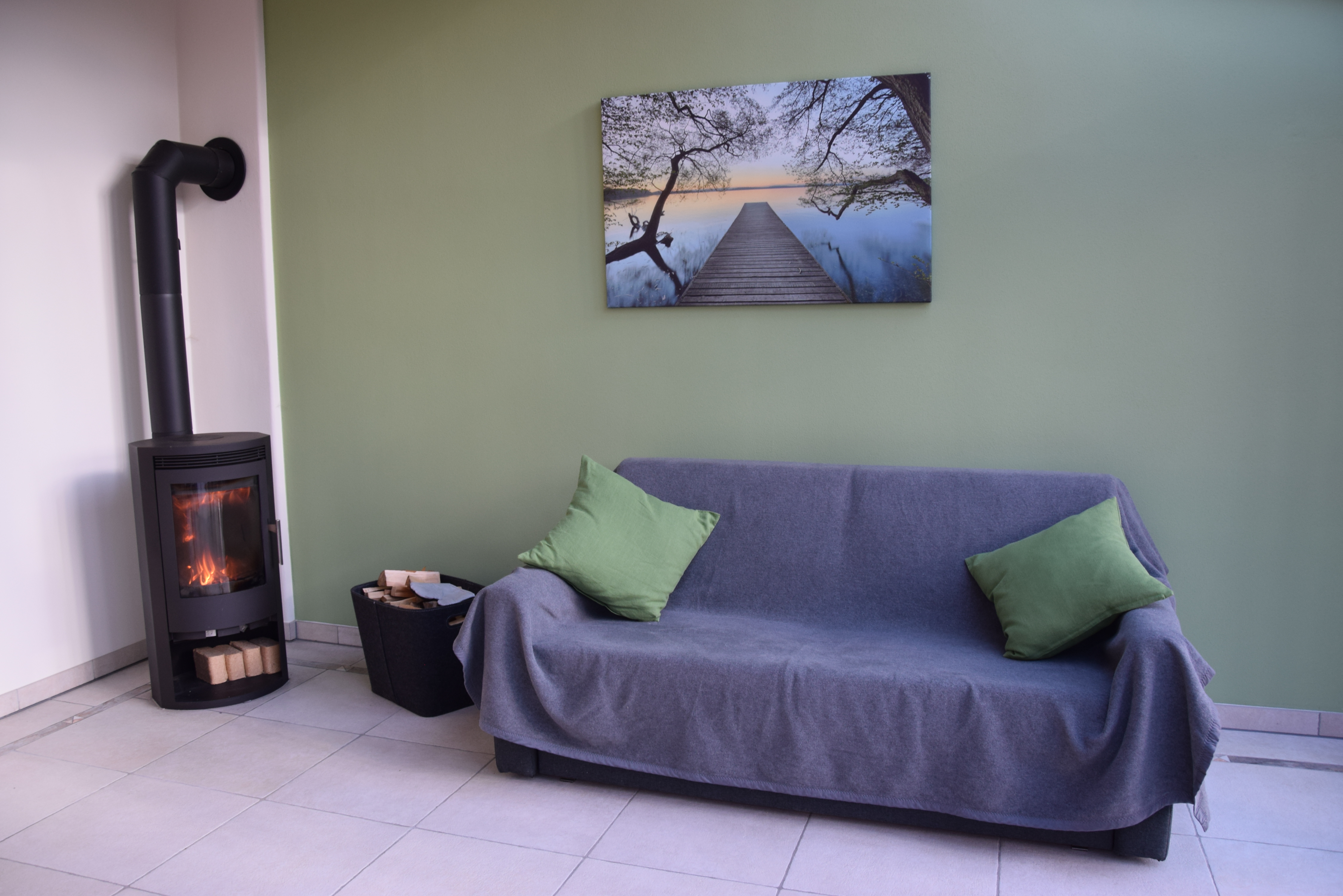 - Gemütlicher Sitzbereich mit Kaminofen und Flachbild TV